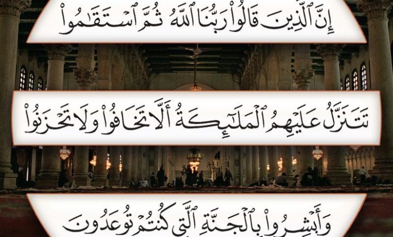 ( إِنَّ الَّذِينَ قَالُوا رَبُّنَا اللَّهُ ثُمَّ اسْتَقَامُوا تَتَنَزَّلُ عَلَيْهِمُ الْمَلَائِكَةُ أَلَّا تَخَافُوا وَلَا تَحْزَنُوا وَأَبْشِرُوا بِالْجَنَّةِ الَّتِي كُنتُمْ تُوعَدُونَ) الآية (30)