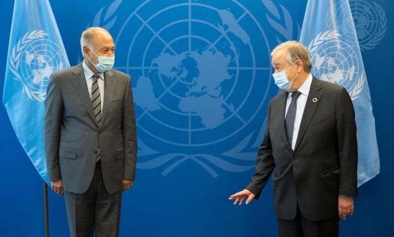 بحث الأمين العام لجامعة الدول العربية أحمد أبو الغيط مع الأمين العام للأمم المتحدة انطونيو غوتيريش التطورات المتعلقة بالقضية الفلسطينية، والدفاع عن حقوق الشعب الفلسطيني.