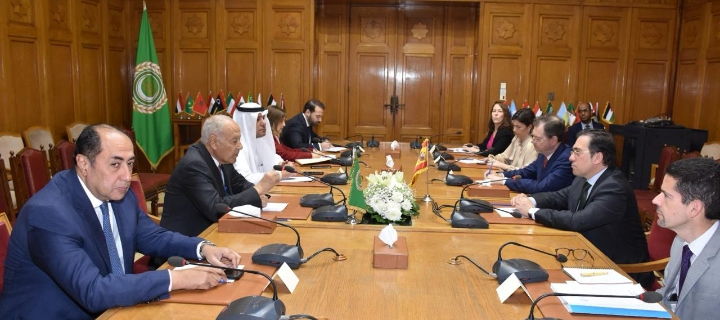 استقبل السيد أحمد أبو الغيط الأمين العام لجامعة الدول العربية اليوم الخميس الموافق ١٤ مارس بمقر الأمانة العامة للجامعة الجاري السيد خوسيه مانويل ألباريس وزير خارجية المملكة الاسبانية الذي يقوم حالياً بزيارة للقاهرة ضمن جولة في المنطقة. وقام ألباريس بإلقاء كلمة أمام مجلس الجامعة العربية على مستوى المندوبين الدائمين تركزت حول الحرب على غزة، وأولوية وقف إطلاق النار.