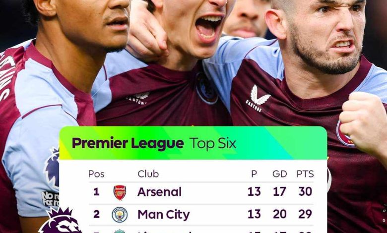 بشق الأنفس آرسنال يتصدر وسيتي وليفربول واستون فيلا وتوتنهام ينافسونه.