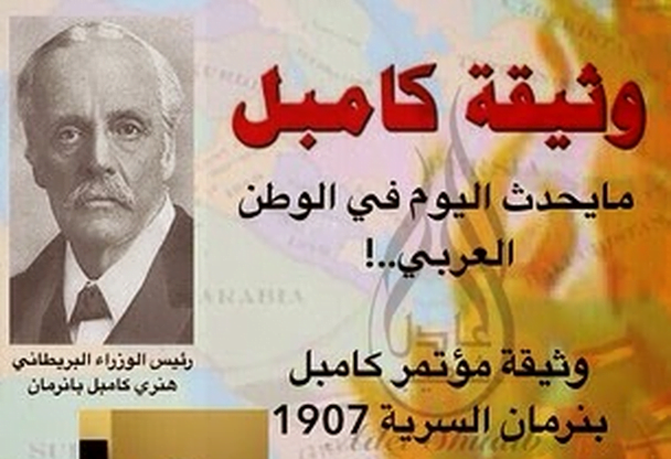 عند الحديث عن قيام الكيان الصهيوني الغاصب في فلسطين وتفتيت الدول العربية وتأخرها أول ما يطرأ على العقل العربي هو المؤتمر الصهيوني الأول الذي عقد في مدينة بازل السويسرية عام 1897 ووعد بلفور 1917 واتفاقية سايكس بيكو 1916 ونتجاهل أخطر وثيقة استعمارية إجرامية وضعت لتقسيم العالم العربي وإبقائه في حالة من التخلف والتشرذم وهى وثيقة كامبل بنرمان رئيس الوزراء البريطاني عام 1907.