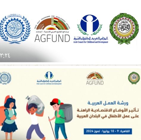 بالتعاون بين كل من جامعة الدول العربية ومنظمة العمل العربية وبرنامج الخليج العربي للتنمية “أجفند” والمجلس العربي للطفولة والتنمية، تعقد ورشة العمل العربية بعنوان “تأثير الأوضاع الاقتصادية الراهنة على عمل الأطفال في البلدان العربية”، وذلك خلال الفترة من 9- 10 يوليو 2024 بالقاهرة – جمهورية مصر العربية.