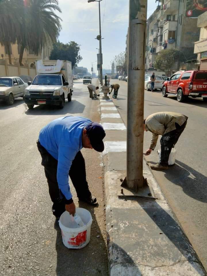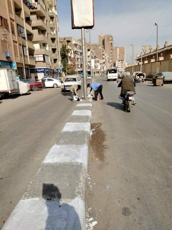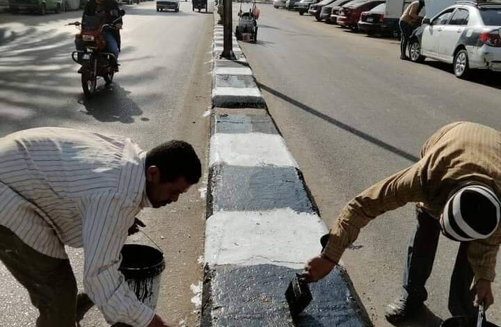 أستمرار أعمال النظافة ودهان البلدورات بشارعي الثورة والجمهورية بحي شرق أسيوط