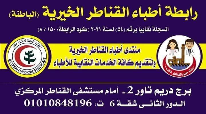 أعلنت نقابة أطباء القليوبية عن تقديم الخدمات النقابية لأطباء القناطر الخيرية والقريبة لها في مركز القناطر تسهيلاً على الأطباء.