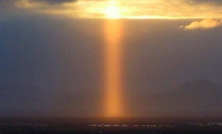عندما يتساقط الثلج بشكل خفيف خلال فصل الشتاء 2024-2025 يمكن أن يظهر عمود لامع من الضوء من الغيوم يشبة الشعاع ،يتدفق من فجوة في الغيوم نحو الأسفل نحو سطح الأرض.