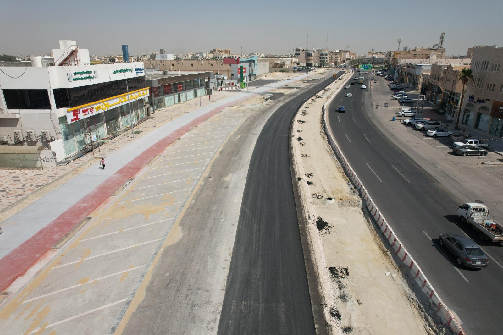 وكذلك تطوير شارع الرياض بطول 5000 متر، وعرض 40 متر، حيث بلغت نسبة الإنجاز فيه 27% ويحتوي على مضمار مشي، ومسار للداجات، وأعمال تشجير على امتداد الشارع، وجلسات جانبية، وشبكة تصريف أمطار، وتعزيز الهوية البصرية لأعمال الإنارة.