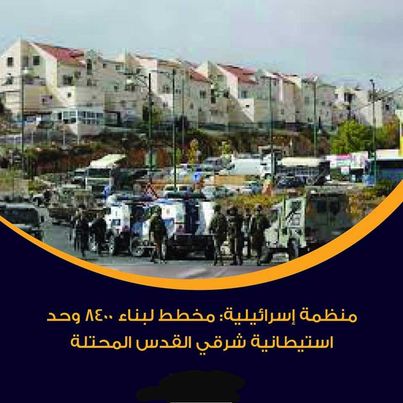 وكان ذالك بعد ان كشفت منظمة إسرائيلية: مخطط لبناء 8400 وحدة استيطانية شرقي القدس المحتلة