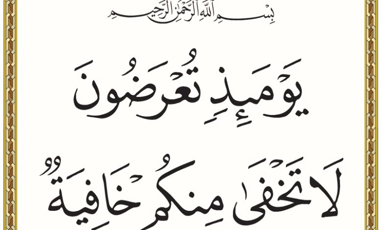 { يَوْمَئِذٍ تُعْرَضُونَ لَا تَخْفَى مِنْكُمْ خَافِيَةٌ }.