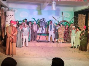 لفرقة قصر ثقافة أبنوب المسرحية من تأليف الدكتور محمود جمال الحديني اشعار وألحان مصطفى غانم ومحمد الأمير موسيقى الفنان روماني زاخر ومن ديكور وملابس فاطمة فاخر مساعدين الإخراج اشرف محمد ومحمود سيد وزلفي محمد العرض من إخراج أحمد عبد الباسط