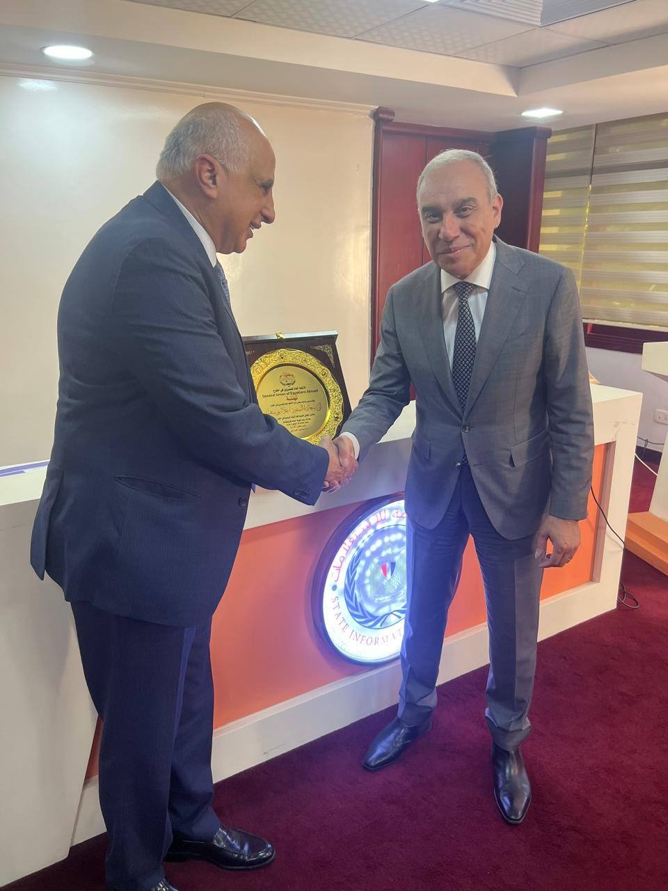 وفي لفتة تقديرية، قدم وفد الاتحاد درعاً تذكارياً للسفير علاء يوسف، تقديراً لمسيرته الدبلوماسية الحافلة كسفير لمصر في عدة دول، وتتويجاً لثقة القيادة السياسية بتبوئه هذا المنصب الهام.