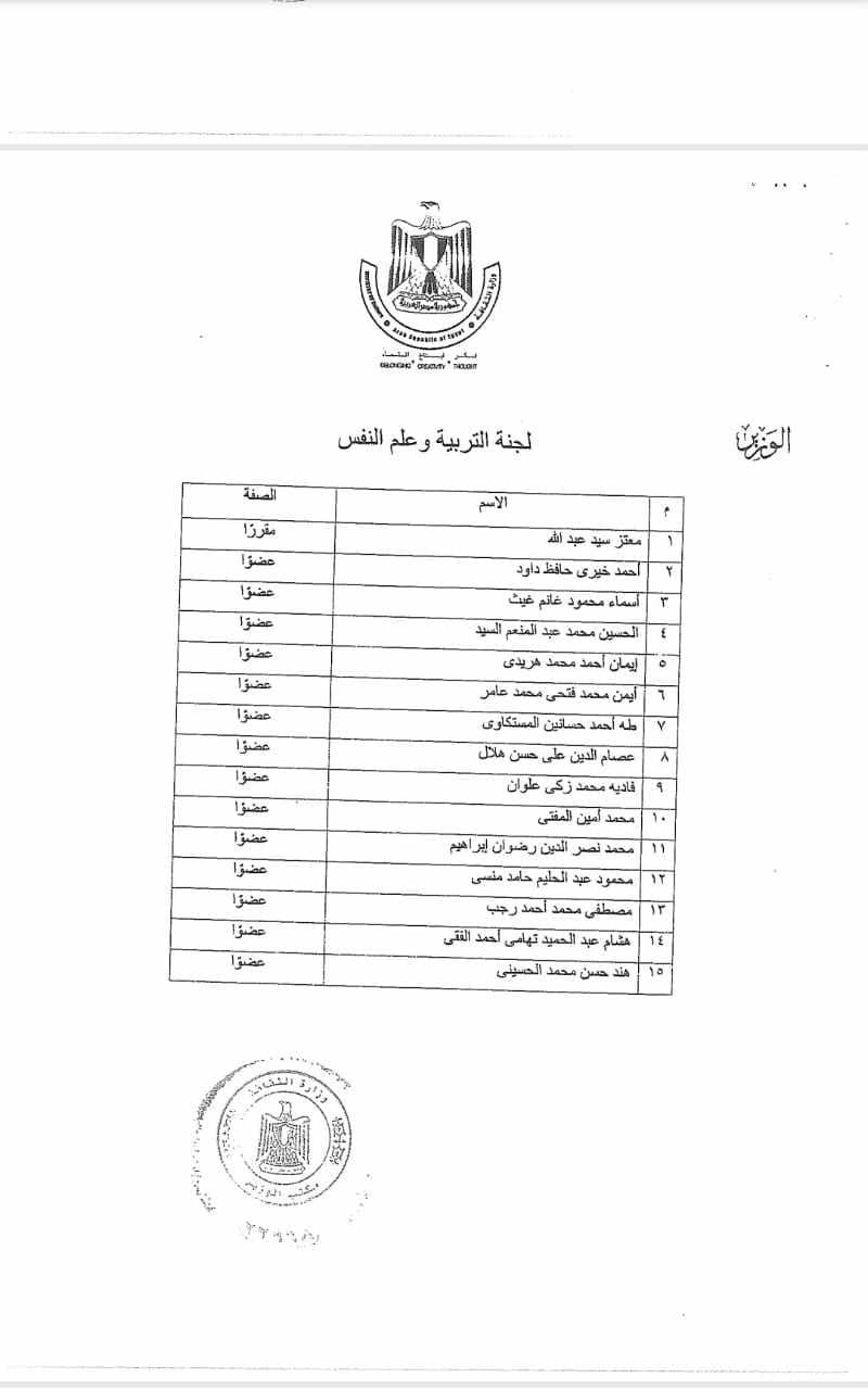 وفيما يلي قائمة بأعضاء لجنة التربية وعلم النفس .