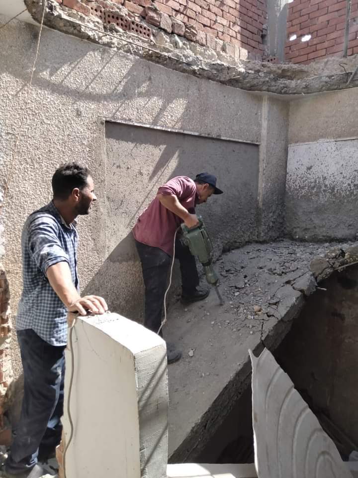 كما تم تكسير سلم تم صبه بالخرسانة المسلحة بالدور الثاني عشر بالأعمال المخالفة بشارع تقسيم سليمان الحكيم وإزالة أعمال تشوين مباني والمشمع ولا يوجد أي أعمال مستجدة بإحدى العقارات بشارع فوزية نجيب متفرع من شارع أحمد علي علوبه وإزالة حوائط حتي منسوب سقف الحادي عشر بجوار المخبز الآلي والمتفرع من شارع الهلالي بنطاق بحي شرق