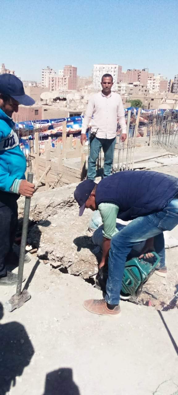 ونوابهما ومسئولي إدارات الخدمات والإشغالات ومسئولي حماية الأراضي والجمعيات الزراعية والبيئة وأملاك الدولة والري وبإستخدام معدات الحملة الميكانيكية لتلك الوحدات المحلية التابعة لها حيث تم فك الشدة الخشبية بسقف الدور الخامس العلوي بجوار مدرسة الفكرية ومصادرة أعمال البناء المخالف من ونش وحديد بشارع قباء وإزالة تم فك الشدة الخشبيه بسقف الدور السادس العلوي بجوار مدرسة ناصر الاعدادية بنين ، وإزالة الحوائط بشارع فريال فضلاً عن إزالة سقف دور خامس علوي أعلى شركة جوباص بشارع الهلالي ، وإزالة فورية لمخالفتين بمنطقه البركة أحدهما إزالة لأعمدة الدور السادس العلوى والأخرى لسقف الدور السابع العلوي بالإضافة إلى إزالة حالتي تعدي بمركز الغنايم حيث تم تنفيذ إزالة فورية عبارة عن سور مبنى بالطوب الأبيض بإرتفاع حوالي ٣ متر تقريبًا بقرية دير الجنادلة وردم قواعد خرسانية على أرض زراعية خارج الحيز العمراني على مساحة حوالي قيراط ونصف بقرية العزايزة.