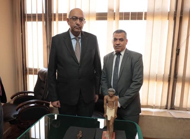 قام السيد السفير عمر سليم، مساعد وزير الخارجية للعلاقات الثقافية ،بمقر ديوان وزارة الخارجية بتسليم القطعتين الأثريتين اللتين تم خروجهما من مصر بصورة غير مشروعة، إلى لجنة من وزارة السياحة والآثار و بحضور الاستاذ/ شعبان عبد الجواد، المشرف العام على الادارة العامة للآثار المستردة وبحضور ممثل عن وزارة الداخلية.