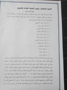 وقام أطباء القسم بتحرير شكوى جماعية وقاموا بتقديمها الى النيابة العامة وكافة الجهات المعنية ، وحتى الان لم يتحرك ساكنا. علما بان هناك احاديث جانبية تتحدث أن بعض اصحاب النفوذ تربطهم علاقة بالمدير تدخلوا لتجميد الشكوى .