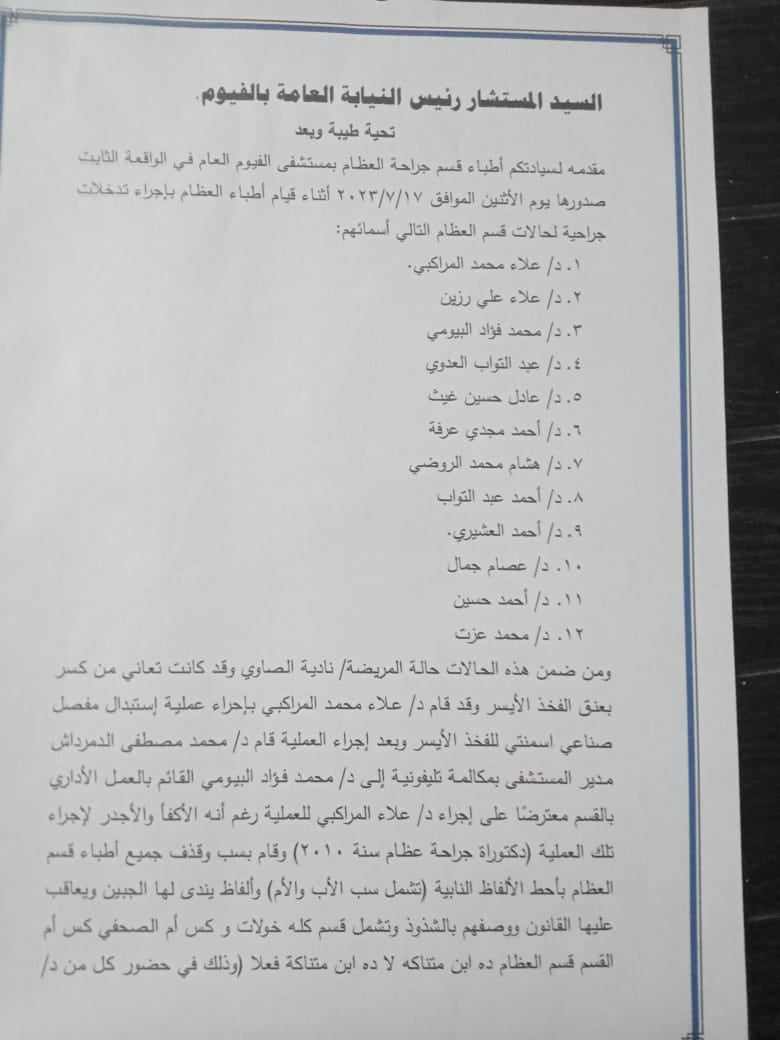 إستغاثة من أطباء مستشفى الفيوم العام لوزير الصحة ضد المدير