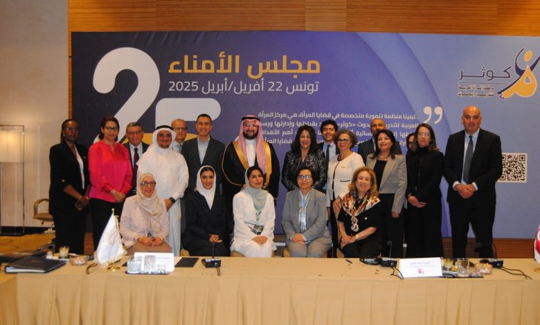 عقد مجلس أمناء مركز المرأة العربية للتدريب والبحوث “كوثر” اليوم الثلاثاء 22 أفريل 2025 بتونس اجتماعه الدوري الخامس والعشرين، برئاسة صاحب السمو الملكي الأمير عبد العزيز بن طلال بن عبد العزيز، رئيس مجلس الأمناء، ورئيس أجفند، وبحضور معالي السيدة أسماء الجابري وزيرة الأسرة والمرأة والطفولة وكبار السن بالجمهورية التونسية (الدولة المستضيفة لـ”كوثر”)، بالإضافة إلى ممثلي وكالات الأمم المتحدة والمنظمات الاقليمية والدولية الداعمة للمركز.