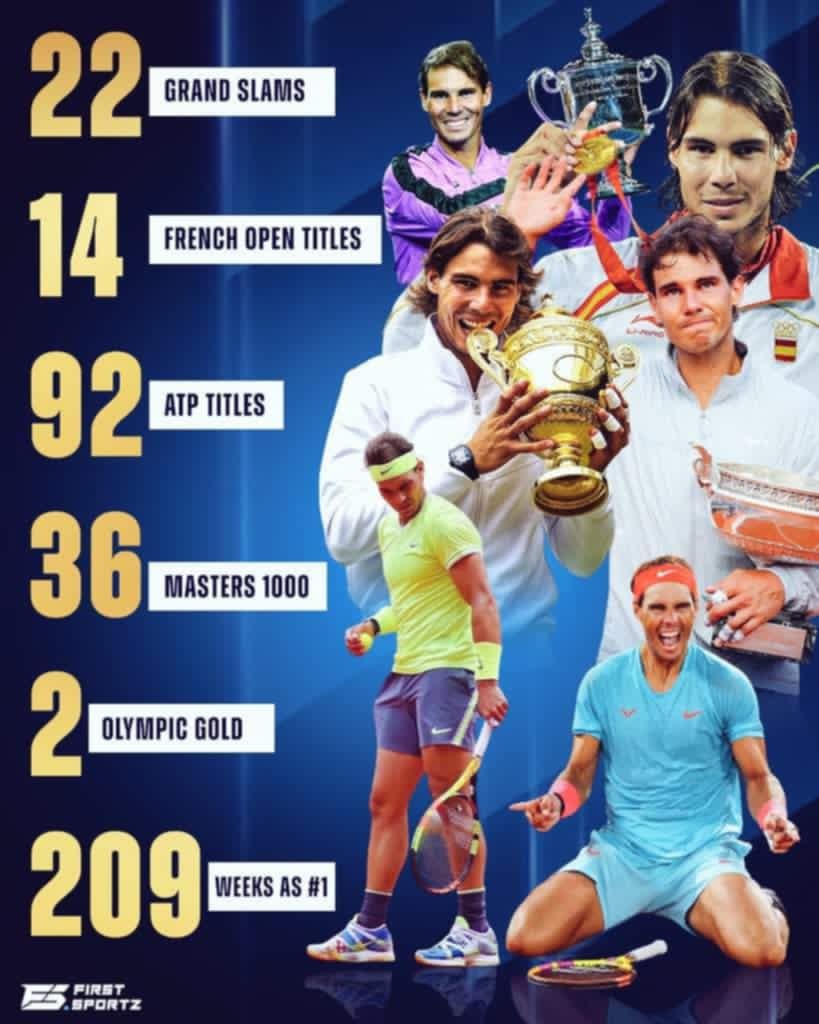وكان نادال صاحب الـ38 عاما، والذي فاز بـ22 لقبا في البطولات الأربع الكبرى (جراند سلام)، من بينها 14 لقباً في بطولة فرنسا المفتوحة للتنس في مسيرة حافلة استمرت لمدة 20 عاما، أعلن اعتزاله في رسالة مصورة عبر حسابه الرسمي على موقع التواصل الاجتماعي إكس».