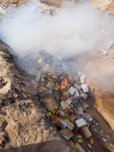 قامت إدارة مراقبة الأغذية بمديرية الشئون الصحية بالشرقية، بالتنسيق مع مكتب مراقبة الأغذية ببلبيس، والاشتراك مع مباحث التموين بالمحافظة، بإعدام رسالة أغذية مستوردة من دولة الهند عبارة عن 13 طن أرز بسمتي، غير صالحة للاستهلاك الادمي، وذلك بعد سحب العينات اللازمة لها، وجاءت النتائج المعملية مرفوضة صحياً، وقام أعضاء اللجنة المشارك بالحملة بإعدام الرسالة بالمدفن الصحي بمدينة بلبيس، بعد اتخاذ كافة الإجراءات القانونية اللازمة.