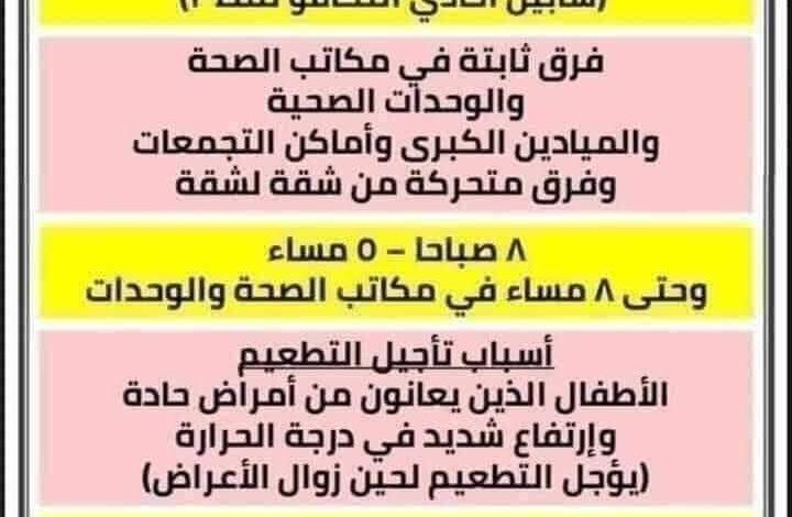 حيث أكد الدكتور فيصل جودة وكيل وزارة الصحة بالمحافظة على انتظام العمل بكافة المراكز والوحدات الصحية وطب الأسرة بمختلف مراكز ومدن المحافظة لتطعيم الأطفال من خلال تجهيز (1874) فرقة ثابتة ومتحركة من منزل لمنزل لضمان وصول الخدمة بشكل جيد لجميع الأطفال ، موضحاً بأن إجمالي عدد المستهدفين من الحملة 676 ألف و 882 طفل وسيتم العمل من الساعة الثامنة صباحا وحتى الخامسة مساءً ، مؤكدا بأن التطعيم آمن وبالمجان وهو عبارة عن نقطتين عن طريق الفم باستخدام الطعم النموي سابين أحادي التكافؤ ، مع التأكيد على تطبيق كافة الإجراءات الوقائية والاحترازية وطرق مكافحة العدوى حفاظا على الصحة العامة .