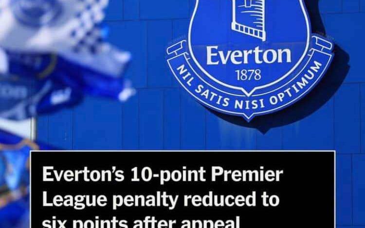 نادي إيفرتون الإنجليزي يعلن تخفيض عقوبته إلى 6 نقاط