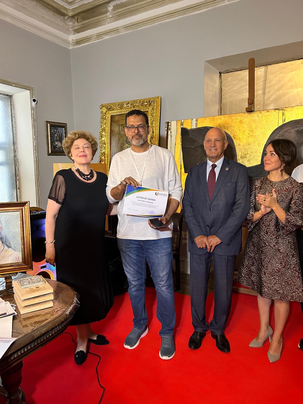وشارك من السعودية كل من الفنان عبدالعظيم الضامن الذي اعرب عن سعادته بهذه المشاركة المميزة ، وقدم اربع حقائب فريدة من نوعها ، وهي جزء من لوحة المحبة والسلام ، وكانت إلى سعادة سفير جامعة الدول العربية والدكتور أسامة السروي والفنانة الروسية داريا ورئيس منظمة اورو آسيا .