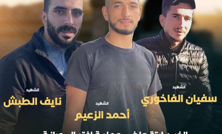 وذكرت مصادر محلية أن الشهداء هم: أحمد محمد فشافشة، وسفيان فاخوري، ونايف أحمد الطبش ملايشة.