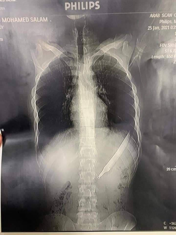 وقال الدكتور سعد مكي وكيل وزارة الصحة بالدقهلية، إن فريق طبي تمكن من إنقاذ حياة مريض ابتلع سكين مطبخ كبير، حيث حضر المريض للمستشفى الدولي يعاني من آلام شديدة بالبطن، وبعمل الأشعات والفحوصات تبين وجود جسم غريب ببطن المريض، وكان يجب عمل استكشاف جراحي فورًا لإنقاذ حياة المريض.