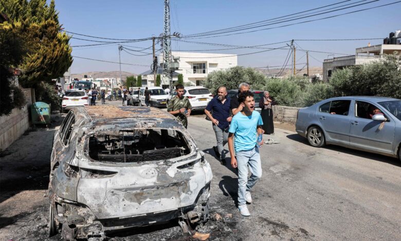 وأفاد أن اعتداءات المستوطنين أدت إلى إصابة 12 مواطنا بالرصاص الحي، والعشرات بالاختناق، وإحراق 30 منزلا، وأكثر من 60 مركبة، وإحراق عشرات الدونمات، ولا تزال النيران مشتعلة حتى اللحظة.