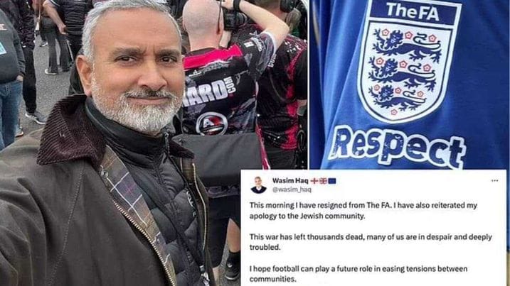 ليخرج حق عن صمته معلنا استقالته عبر حسابه على منصة “إكس”: “استقلت هذا الصباح من الاتحاد الإنجليزي. كما أكرر اعتذاري للجالية اليهودية”.