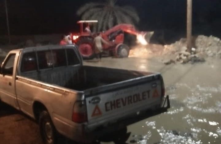 استمرار اعمال إصلاح كسر خط المياه الرئيسي بقرية الغرق بالفيوم