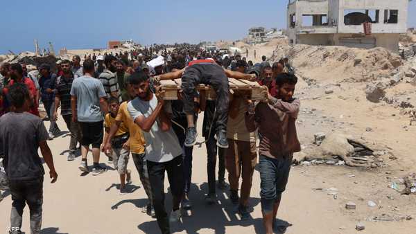استمرار جرائم الاحتلال:9 شهداء نتيجة قصف خيام النازحين بدير البلح وارتفاع شهداء التجويع إلى 128