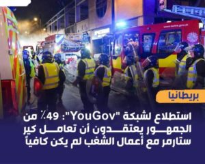 وتوعد ستارمر بمحاسبة مرتكبي أعمال الشغب ونهب المتاجر وحرق السيارات. وقال إنه جرى اعتقال ما يربو على 400 شخص وتوجيه اتهامات رسمية لمئة منهم، مضيفا أنه من المتوقع بدء إصدار أحكام بحقهم قريبا.