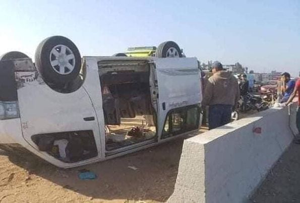 اصابة ١٣ شخصا فى حادث انقلاب سيارة ميكروباص بطريق أسيوط الجديدة
