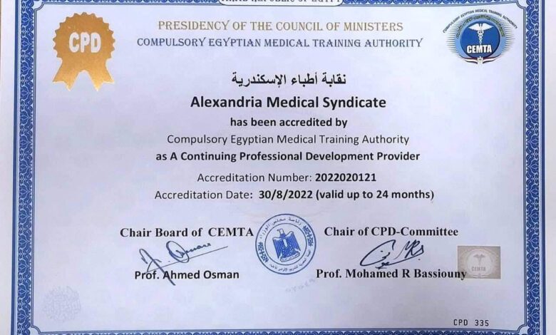 اعتماد نقابة أطباء الإسكندرية لتقديم أنشطة التطوير المهني المستمر