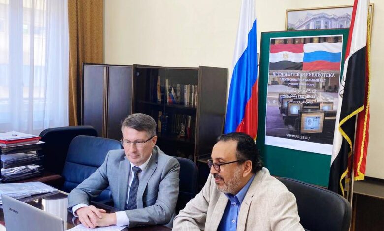 من جانبه صرح السفير “نزيه النجارى” أن المكتبة الرئاسية هى أحد روافد الثقافة الروسية، وعبر عن سعادته بمبادرة المكتبة لإفتتاح قاعاتها للقراءة عن بُعد والتى ستُمكن طالبى العلم والثقافة من اشباع رغباتهم فى التزود من العلم والمعرفة، لافتاً الى أن تدشين عام التعاون الانسانى بين مصر وروسيا هو مؤشراً جديداً على استمرار تنامى العلاقات المصرية الروسية.