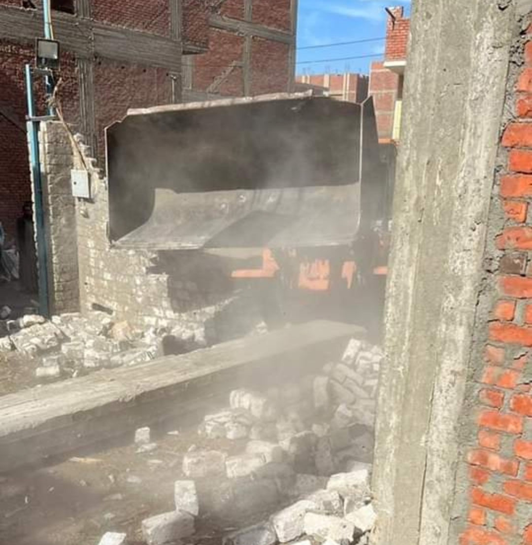 خامسا : ازالة فورية لحالة تعدي بالطوب الابيض والاسمنت خارج الحيز العمراني علي مساحة 150 متر بعرب الديب قطاع شلقان وتم إتخاذ كافة الإجراءات القانونية حيال المخالفين.