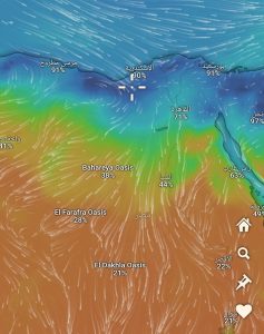 رياح مثيرة للرمال والأتربة على جنوب البلاد، خاصة حلايب وشلاتين، وذلك على فترات متقطعة.