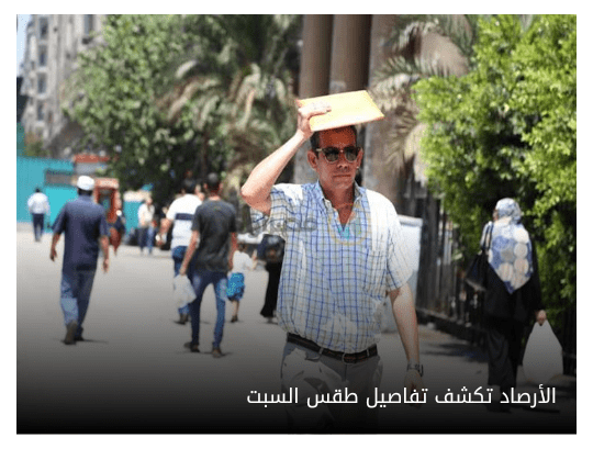 يتوقع خبراء هيئة الأرصاد الجوية أن يكون الطقس غدا السبت، مائلا للحرارة نهارا ومائلا للبرودة ليلا مع وجود شبورة مائية صباحا ورياح معتدلة على القاهرة الكبرى والوجه البحري، وأن يكون شديد الحرارة نهارا لطيفا ليلا مع وجود شبورة مائية صباحا ورياح تنشط مثيرة للرمال والأتربة على شمال الصعيد وأن يكون شديد الحرارة نهارا لطيفا ليلا مع رياح معتدلة على جنوب الصعيد. كما يتوقع الخبراء أن تشهد السواحل الشمالية الشرقية ووسط سيناء طقسا معتدلا نهارا مائلا للبرودة ليلا مع رياح معتدلة تنشط أحيانا على وسط سيناء، وتشهد السواحل الشمالية الغربية طقسا معتدلا نهارا باردا ليلا ورياحا معتدلة تنشط غربا، ويشهد جنوب سيناء وسلاسل جبال البحر الأحمر طقسا مائلا للحرارة نهارا لطيفا ليلا ورياحا معتدلة تنشط على بعض المناطق. وتكون حالة البحرالمتوسط خفيفة الى معتدلة ويتراوح ارتفاع الموج فيه بين متر ومتر ونصف المتر والرياح السطحية شمالية غربية، بينما تكون حالة البحر الأحمر معتدلة ويتراوح ارتفاع الموج فيه بين متر ونصف ومترين والرياح السطحية شمالية غربية