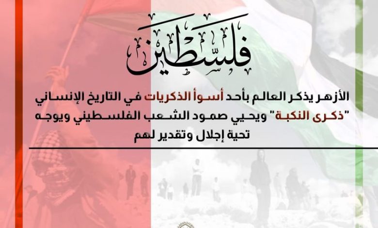 الأزهر في”ذكرى النكبة”:الشعب الفلسطيني صامد أمام إرهاب عدو محتل همجي