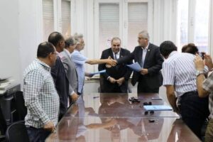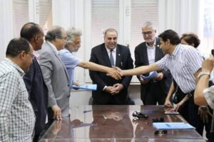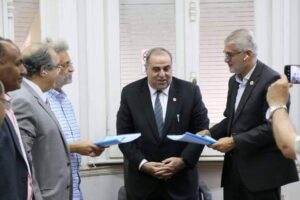 وقع د. حسين خيري نقيب الأطباء التعاقد عن نقابة الأطباء و عن الكلية وقع د. عمرو محمد سامي عميد كلية الفنون الجميلة، وحضر التوقيع د. ممدوح مهدي رئيس جامعة حلوان و د.أمنية يحيى وكيل كلية الفنون الجميلة ود. محمد عبد العزيز مدير مركز الدراسات الاستشارات المعمارية والفنية بالكلية، كما حضر التوقيع د.أيمن سالم أمين عام نقابة الأطباء ود. ابو بكر القاضي أمين الصندوق ود. أحمد حسين أمين مساعد النقابة.