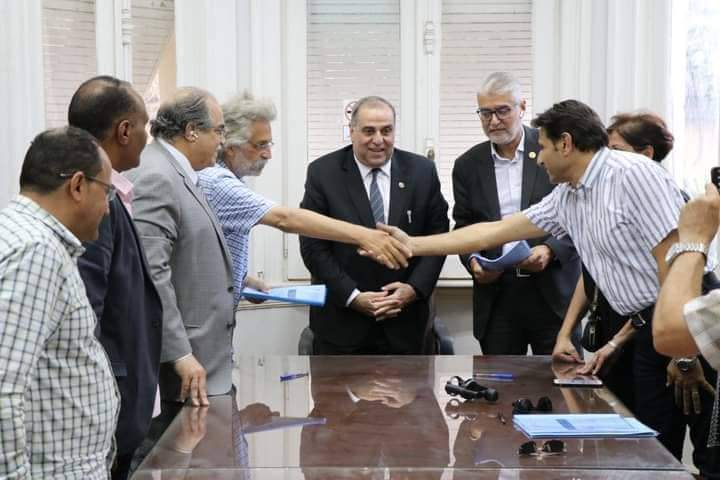وقع د. حسين خيري نقيب الأطباء التعاقد عن نقابة الأطباء و عن الكلية وقع د. عمرو محمد سامي عميد كلية الفنون الجميلة، وحضر التوقيع د. ممدوح مهدي رئيس جامعة حلوان و د.أمنية يحيى وكيل كلية الفنون الجميلة ود. محمد عبد العزيز مدير مركز الدراسات الاستشارات المعمارية والفنية بالكلية، كما حضر التوقيع د.أيمن سالم أمين عام نقابة الأطباء ود. ابو بكر القاضي أمين الصندوق ود. أحمد حسين أمين مساعد النقابة.