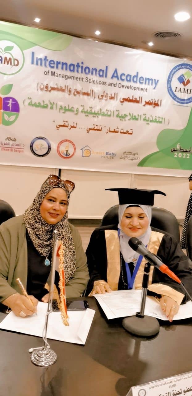 وفي ختام المناقشة منحت الأكاديمية الدكتورة هناء حسين مسعود درجة الدكتوراة الفخرية