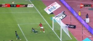 بعدها تسيد الأهلي المباراة وفي الدقيقة ٤٤ يحرز زياد طارق هدف من أجمل أهداف الدورى بعد أن مر من أكثر من لاعب واودعها في الزاوية اليمنى لعبد المنصف وهو من أجمل الأهداف. بعدها يطلق حكم المباراة صافرة نهاية الشوط الأول بتقدم الاهلي بهدفين دون رد…