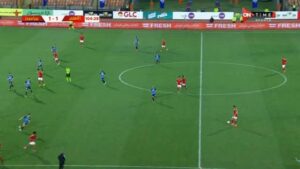 بعدها يضيع هدف مؤكد من الشحات بعد تمريرة سحرية من كهربا على حدود منطقة الجزاء سددها الشحات خارج المرمي