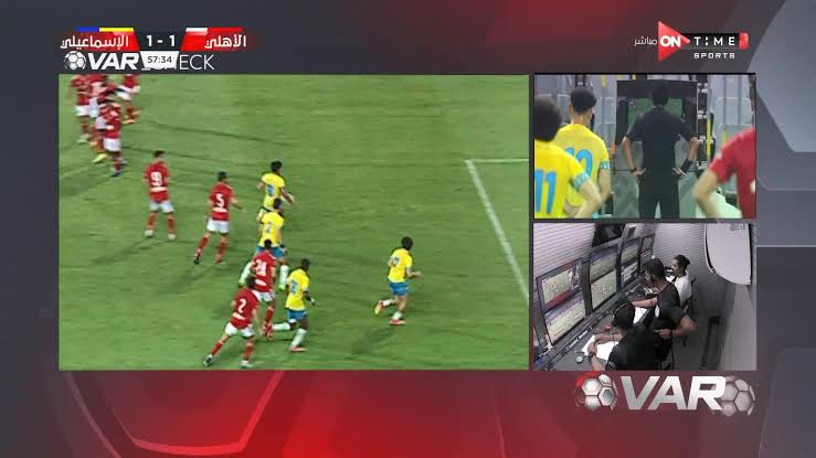 لكن اللعب توقف لمراجعة اللعبة في الفيديو وبعدها قرر الحكم أحمد الغندور إلغاء الهدف بسبب لمسة يد على محمد حسن.