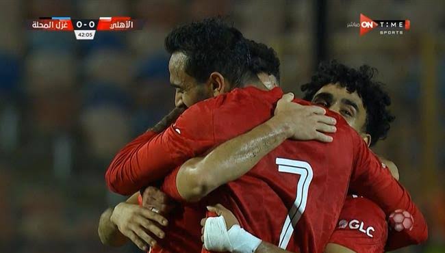 ينجح الأهلي في تسجيل هدف التقدم في الدقيقة 42 عن طريق مصطفى العش مدافع غزل المحلة بالخطأ في مرماه.