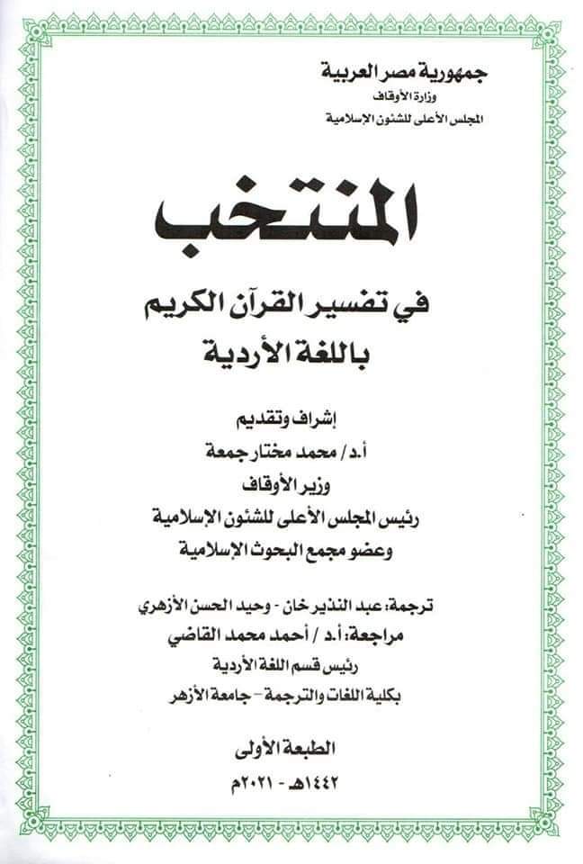 تسلم المجلس الأعلى للشئون الإسلامية التابع لوزارة الأوقاف الطبعة الأولى من ترجمة معاني القرآن الكريم إلى اللغة الأردية ، والتي استمر العمل فيها لنحو ثلاثة أعوام وهي أول ترجمة مصرية لمعاني القرآن الكريم إلى اللغة الأردية.