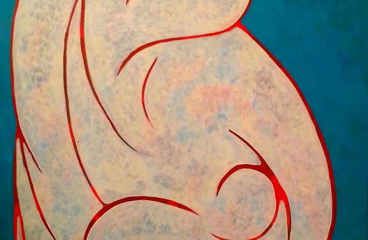 * حتى توصلت إلي هذه الفكرة ، خطوط موحية ، دون تفاصيل و ملامح ، لامرأة ، بنت ، أم صغيرة السن ، تحمل طفل بين يديها و رأسها منحنى تجاه الطفل تنظر له و ترتدي ملابس امرأة ” عربية ” ، الجلباب و تغطي شعرها  كعادة أهل هذه المنطقة.