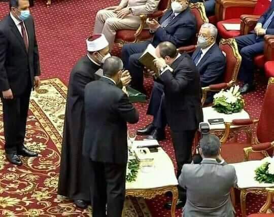 الإمام الأكبر يهدي الرئيس السيسي نسخة نادرة من المصحف الشريف
